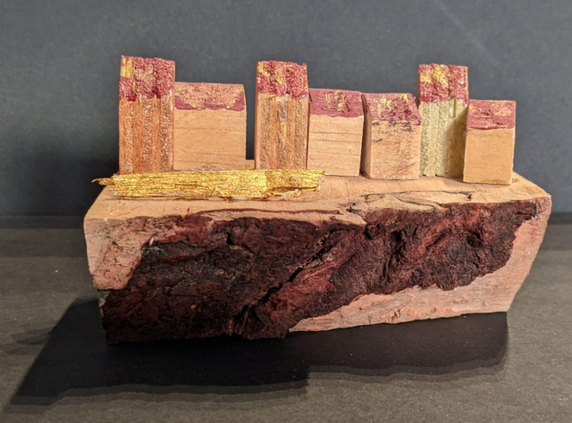 Cette œuvre sculpturale est réalisée à partir de chutes de bois soigneusement assemblées au sein de l'atelier Xavier Delaporte, révélant la beauté brute de la matière recyclée. Les textures naturelles, contrastées par des touches dorées et des nuances rougeâtres, évoquent un paysage minéral ou une cité abstraite. Chaque pièce est unique, mettant en valeur l’imperfection et l’authenticité du bois, pour une création à la fois contemporaine et chaleureuse, idéale pour sublimer un intérieur avec caractère.